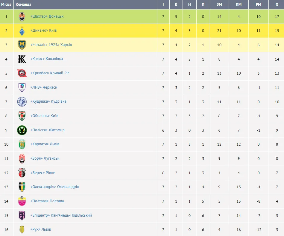 - Донецька команда під керівництвом турецького фахівця Арди Турана провела шість матчів, набрала 17 очок та одноосібно очолила турнірну таблицю УПЛ. Київське Динамо, яке в цьому турі втратило очки у Львові в грі з місцевими Карпатами (3:3), відстає на два пункти.