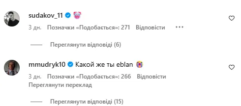 А ось Михайло Мудрик не став стримувати емоцій і різко відповів блогеру просто під постом, написавши: