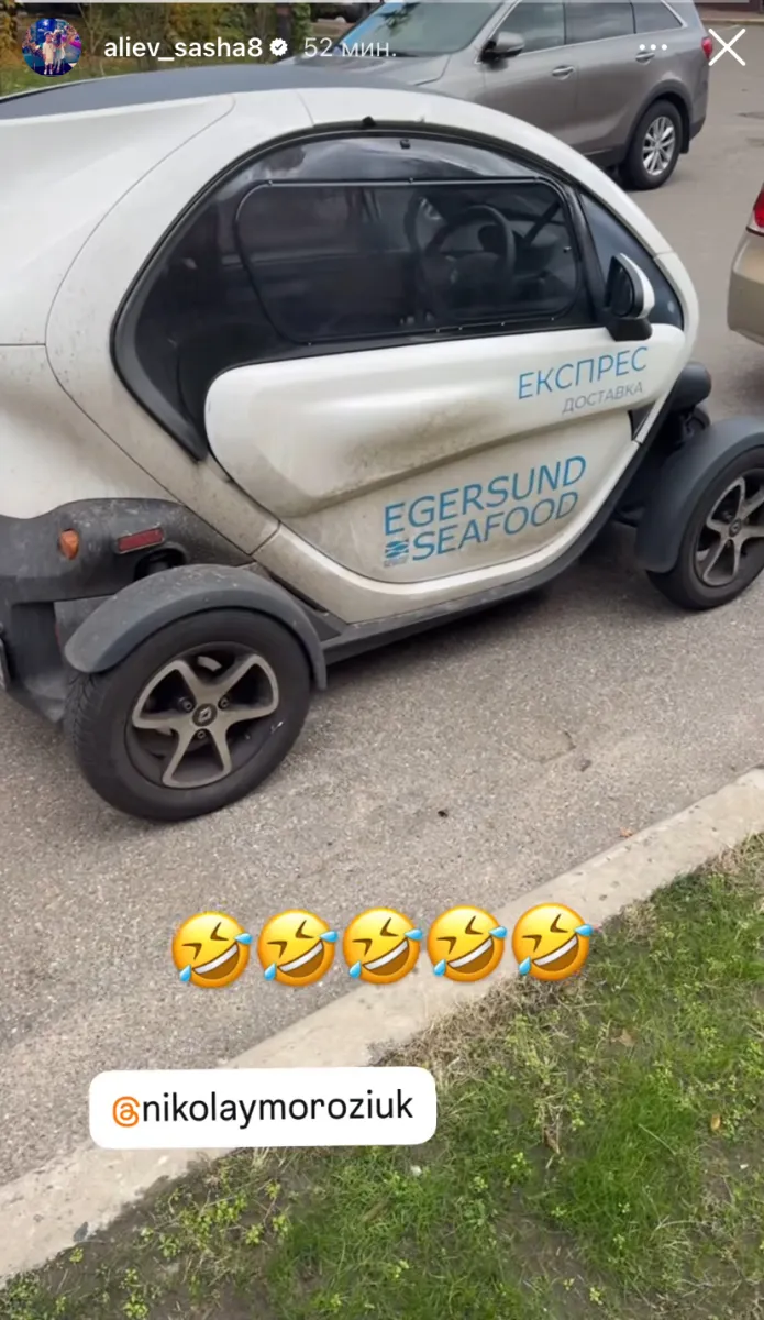 Колишній хавбек київського Динамо та національної збірної України Олександр Алієв виклав на своїй сторінці у соціальній мережі Instagram відео з оглядом мініатюрного авто, відмітивши у сторіз свого колишнього одноклубника Миколу Морозюка, жартома повідавши, що машина його!