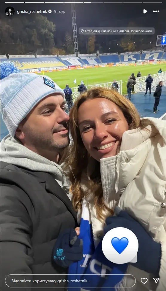 Решетнік також показав селфі з дружиною Христиною, з якою був на матчі.