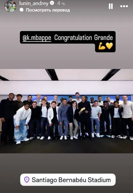 Привітай із непересічним досягненням свого одноклубника й український воротар королівського клубу Андрій Лунін, запостивши на своїй сторінці у соціальній мережі Instagram світлину, котру підписав так: