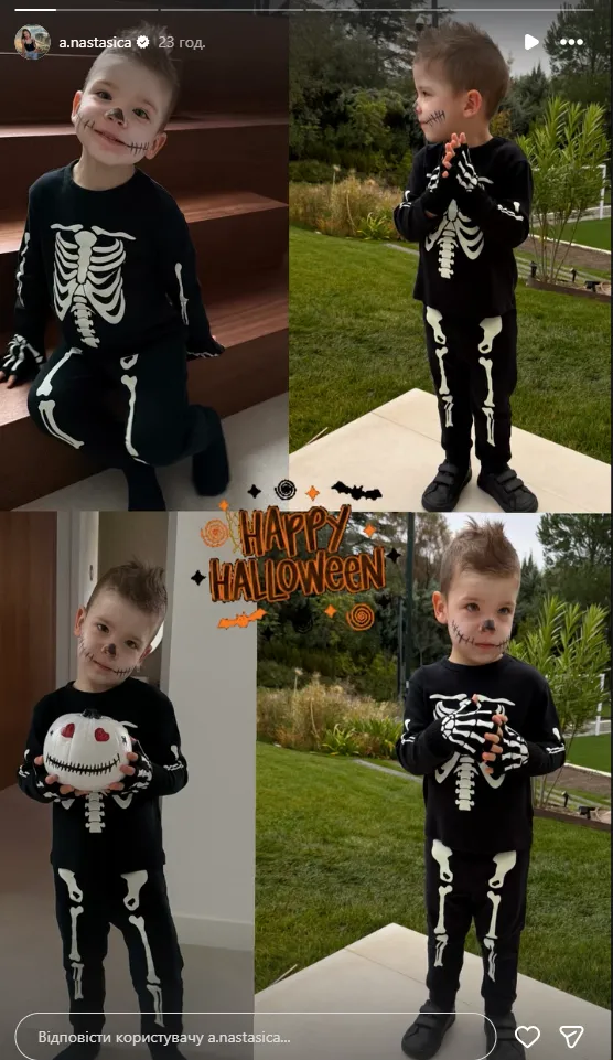 Син воротаря Реала Андрія Луніна, який носить ім’я батька, з’явився у класичному костюмі скелета – чорно-білий образ ідеально передав дух свята.