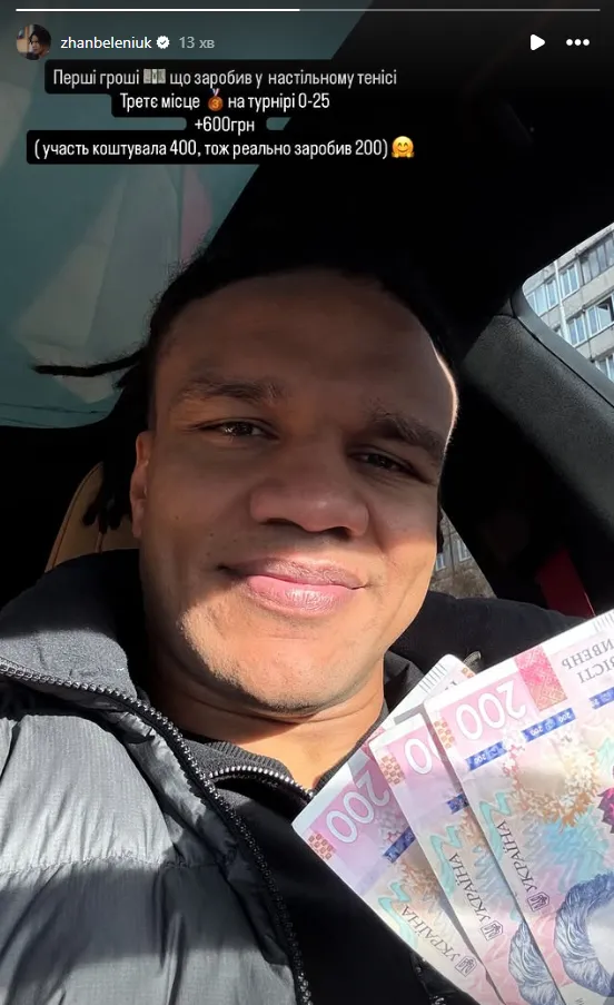 Відомий український спортсмен і депутат від партії «Слуга народу» Жан Беленюк поділився у соцмережах, скільки вдалося заробити в новому для себе виді спорту, а саме настільному тенісі.