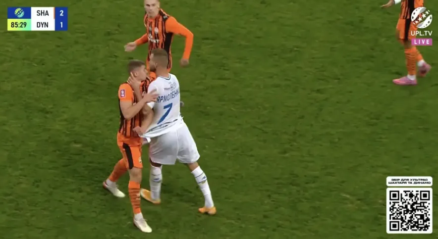 Сутички між командами не припинялися до фінального свистка – на 86-й хвилині Ярмоленко схопив Бондаря за горло під час суперечки.