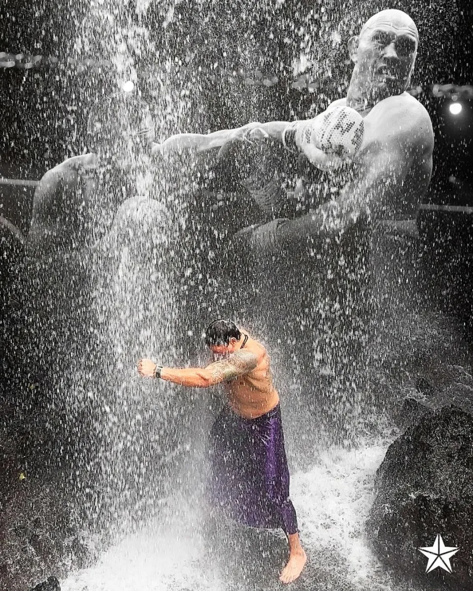 Усик під водоспадом згадав яскравий удар з першого бою з Тайсоном Ф’юрі: епічне фото нашого чемпіона