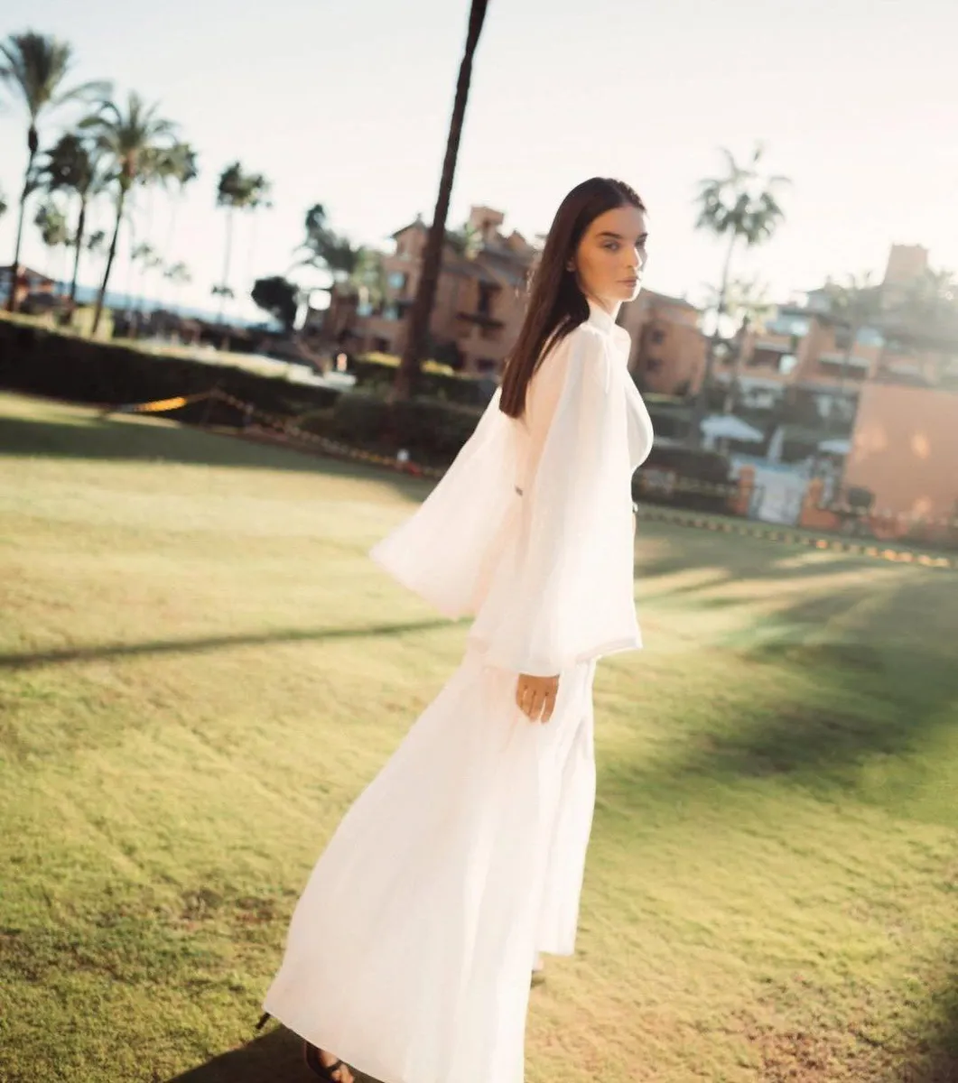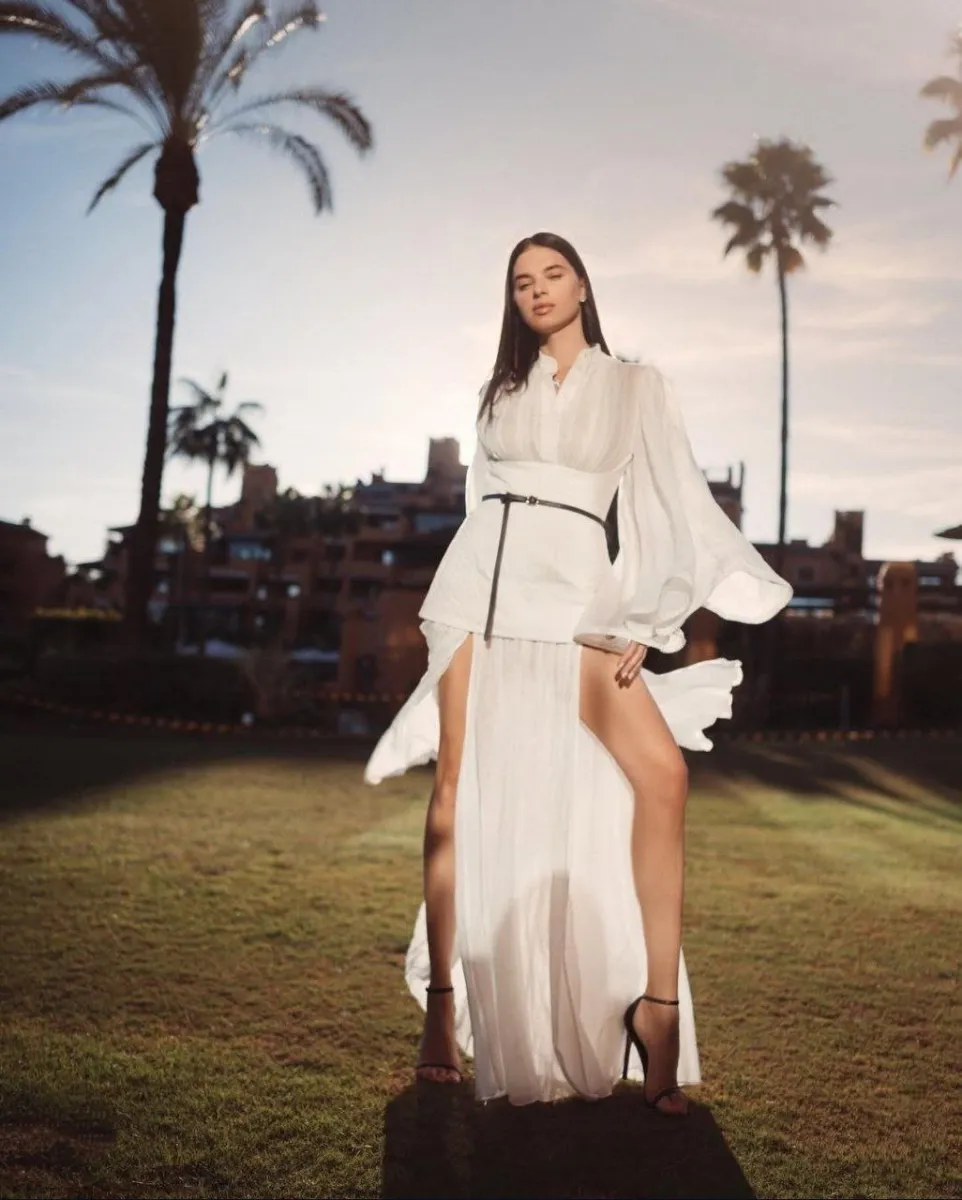 Цікаво, що днями вона вже публікувала фото у чорній сукні, зроблені на набережній в Іспанії. Та цього разу зіркова дружина вирішила змінити стиль і здивувала контрастним образом у білому.
