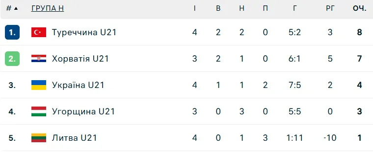 - Молодіжна збірна України посідає третю позицію, набравши чотири очки.