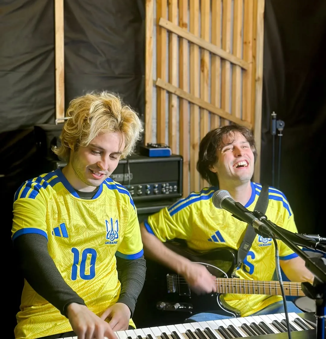 Музиканти опублікували на своїй офіційній сторінці в соціальній мережі Instagram фотографії, на яких вони вдягнуті у новий комплект ігрової форми національної збірної України з футболу.