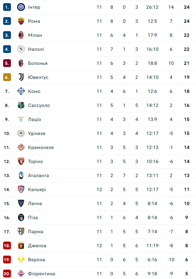 - Дженоа провела 12 матчів, набрала вісім очок та посідає місце в зоні вильоту, на 18-тій сходинці в турнірній таблиці Серії А.