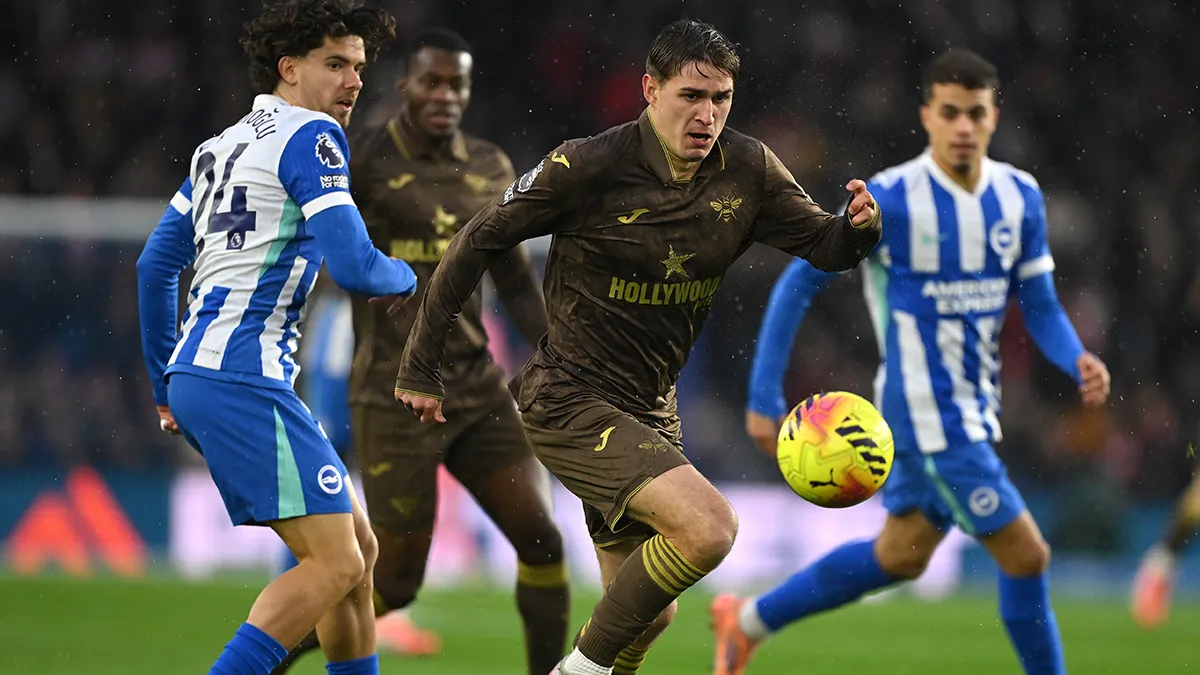 Єгор Ярмолюк (в центрі) в матчі проти Брайтона. Фото: Getty Images