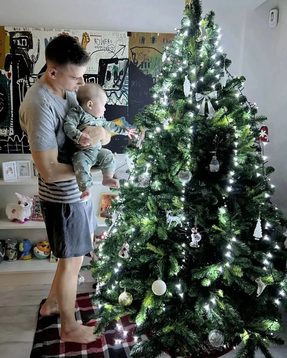 «Перша ялинка у житті», – написав він тоді, тримаючи сина на руках.