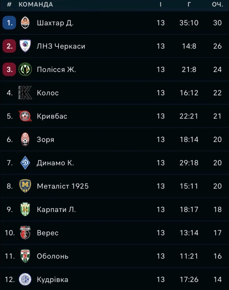 Сьогодні, 24 листопада, відлунали пристрасті 13-го за ліком туру Української Прем'єр-ліги. Сайту BLIK.ua інформує своїх читачів про всі результати.