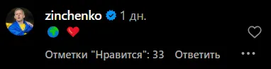 Зінченко відреагував коротко, залишивши коментар з двома емодзі - сердечком і глобусом.