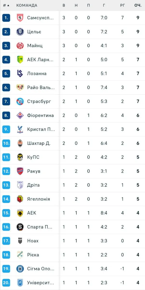 - 08 Турнірна таблиця Ліги конференцій 2025/26