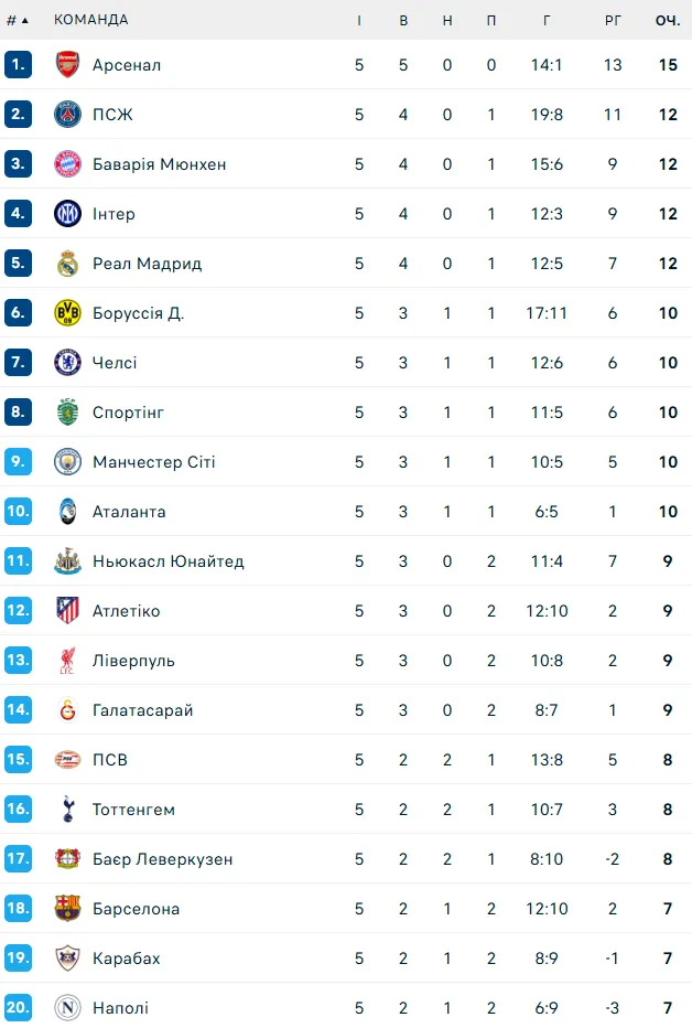 Феєрія ПСЖ Забарного, перший матч Луніна і покер Мбаппе: результати 5-го туру ЛЧ і турнірна таблиця