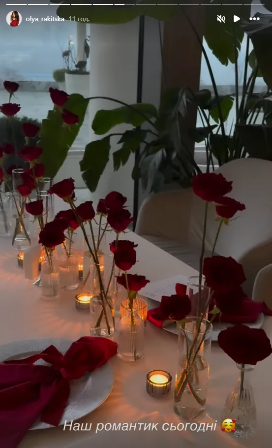 Крім того, жінка показала, яку романтичну атмосферу створив для неї гравець «Чорноморця» у цей важливий день, коротко зазначивши, що саме так виглядає їхній романтичний вечір.