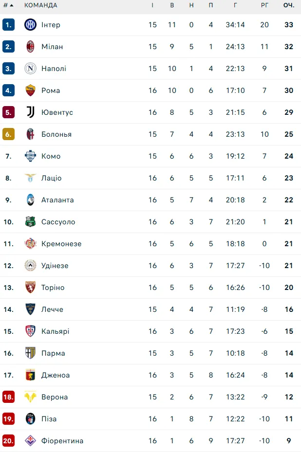 Турнірна таблиця чемпіонату Італії: на якому місці Дженоа Маліновського