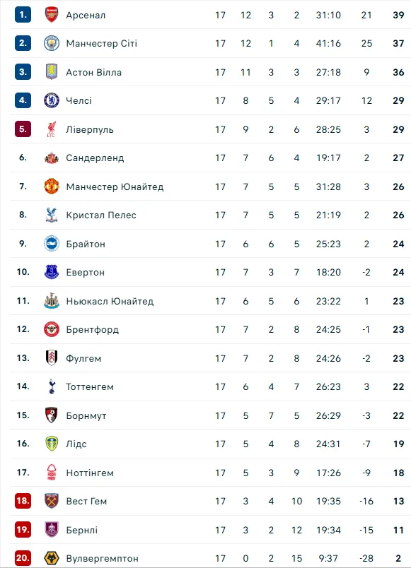 Футбол. Чемпіонат Англії. 17-й тур
