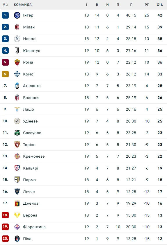 - Дженоа, яку очолює головний тренер Даніеле Де Россі, провела 19 матчів, набрала 16 очок та посідає 17-те місце в турнірній таблиці з відривом від зони вильоту в п’ять залікових пунктів.