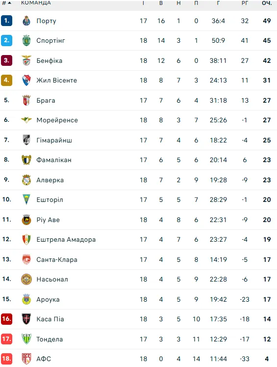 - Відставання команди від лідера, лісабонського Спортінга, складає сім залікових пунктів при одній грі в запасі у конкурента.