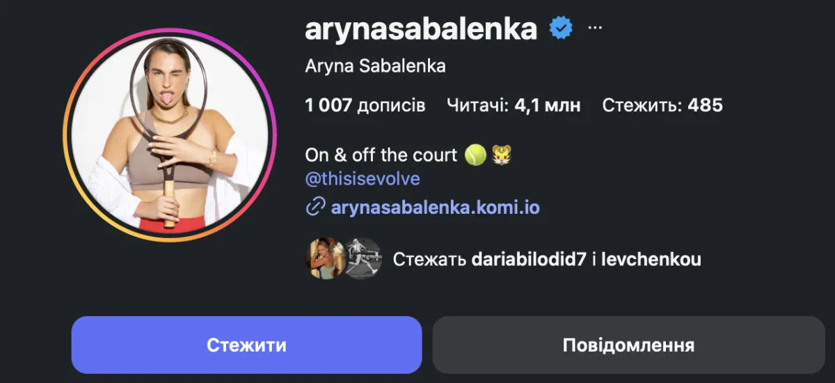Аріна Соболенко. Фото: Instagram