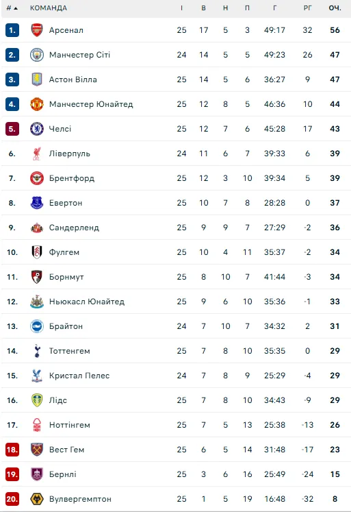 - Лондонська команда під керівництвом головного тренера Кіта Ендрюса зіграла 25 поєдинків, набрала 39 очок та посідає сьоме місце в турнірній таблиці англійської Прем’єр-ліги.