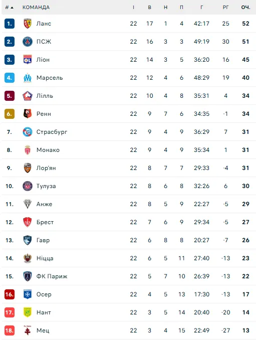 Турнірна таблиця Ліги 1: на якому місці Ліон Яремчука