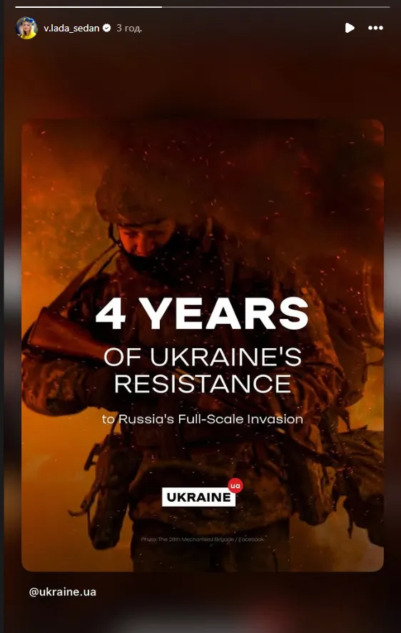 Наречена спортсмена також вдалась до формату відео без слів — поширила Reels із кадрами російських атак на українські міста. Зруйновані будівлі, понівечена інфраструктура, людський біль – все це у кількахвилинному ролику, який говорить більше, ніж будь-який текст.