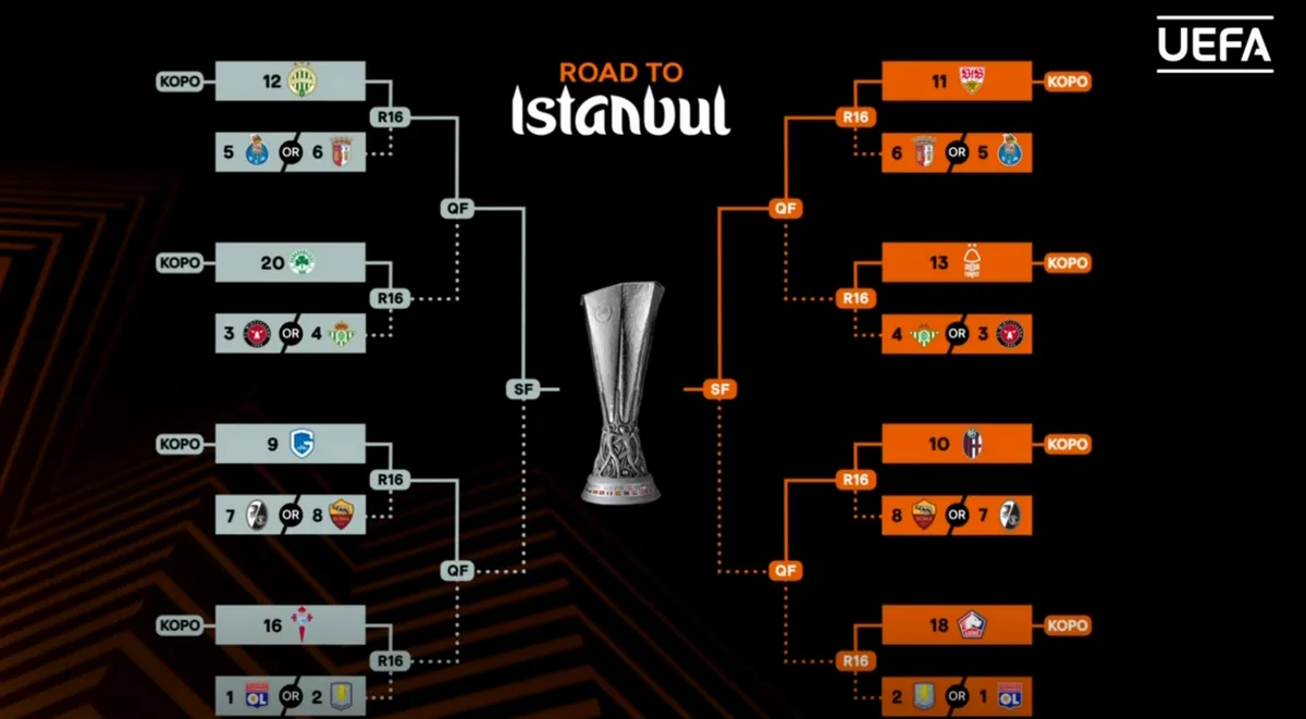 До топ-8 основного раунду увійшли: Ліон, Астон Вілла, Мідтьюлланд, Бетіс, Порту, Брага, Фрайбург та Рома.