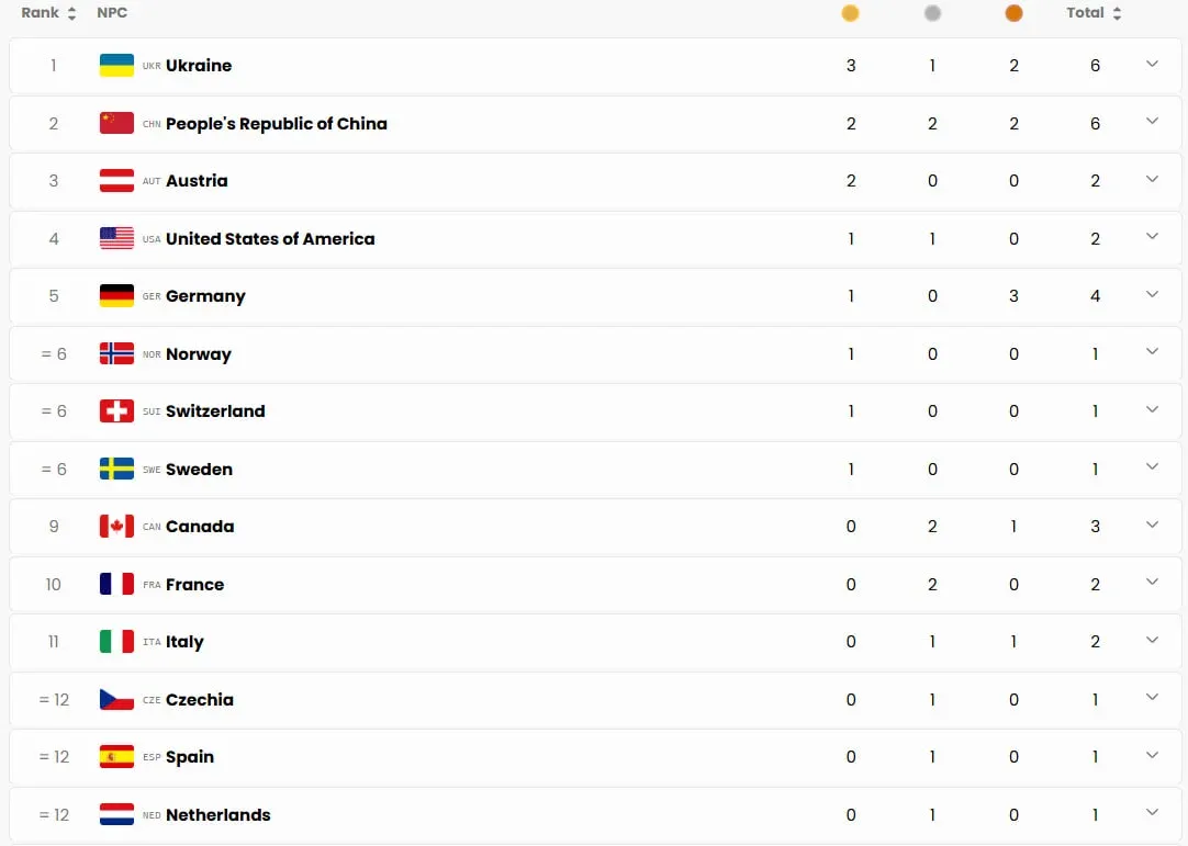 Загалом у перший день Паралімпіади-2026 Україна виграла три золоті медалі, одне срібло та дві бронзи, що дозволило їй очолити медальний залік.