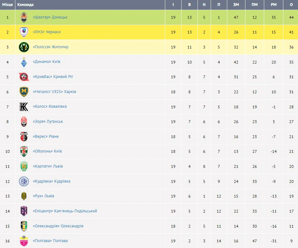 Шахтар зберіг відрив від ЛНЗ, Динамо скоротило відставання від Полісся: турнірна таблиця УПЛ після 19-го туру