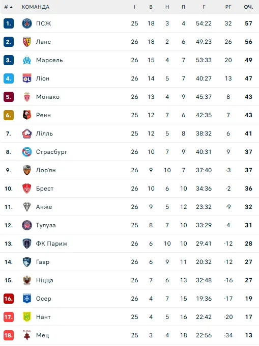 Турнірна таблиця Ліги 1: на якому місці Ліон Яремчука