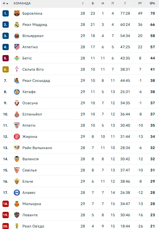 Турнірна таблиця Ла Ліги: на якому місці Жирона українців Ваната і Циганкова
