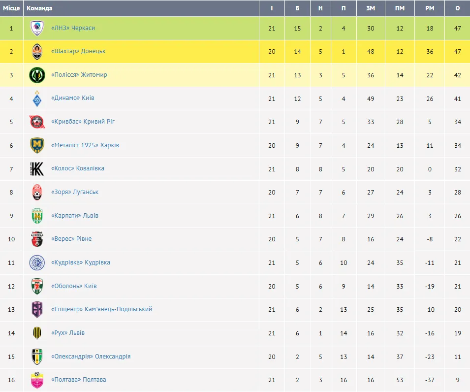 ЛНЗ наздогнав Шахтар і вийшов на перше місце: результати матчів і турнірна таблиця УПЛ після 21-го туру
