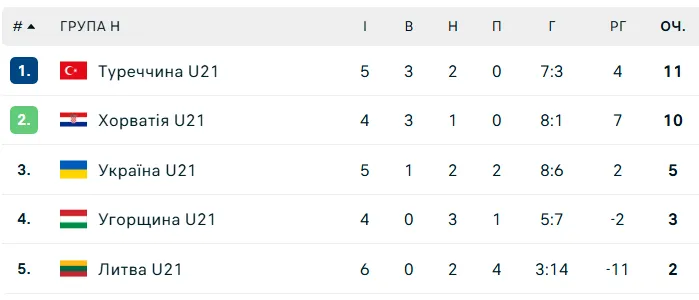 Збірна України U-21 втратила перемогу над Литвою: турнірна таблиця відбіркової групи на Євро-2027