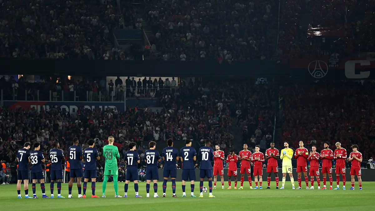 Хвилина мовчання перед матчем ПСЖ – Ліверпуль у Парижі. Фото: Getty Images