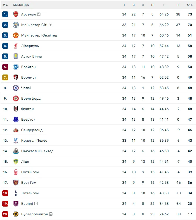 Турнірна таблиця АПЛ після 34-го туру: на якому місці Брентфорд Ярмолюка