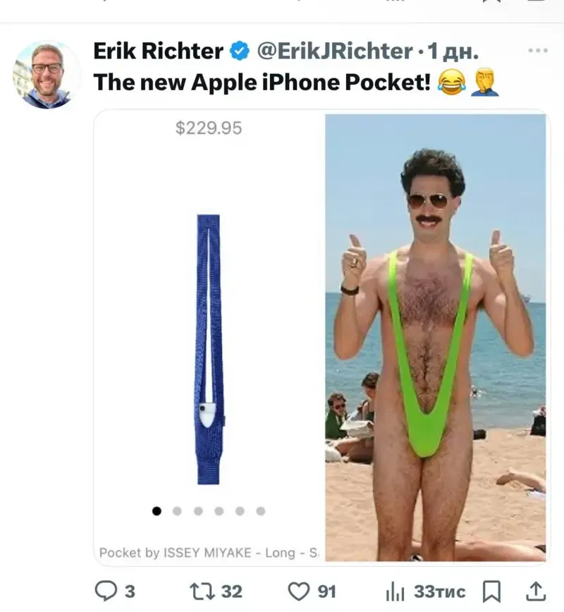 Користувачі порівнюють новий аксесуар із смішним бікіні Бората. Фото: x.com