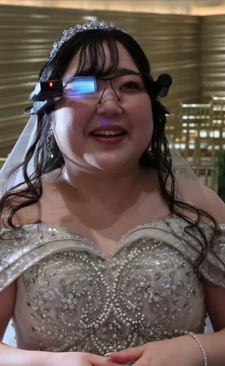 Весільні обітниці також згенерував штучний інтелект, однак зачитував їх фахівець. На церемонії був і весільний фотограф, який працював в AR-окулярах та вибудовував кадр так, щоб наречена займала лише половину фото, залишаючи місце для віртуального чоловіка.
