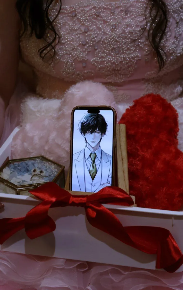 Утім, замість реального чоловіка поруч із нареченою, яка для події одягла тіару, стояв смартфон із зображенням майбутнього чоловіка.