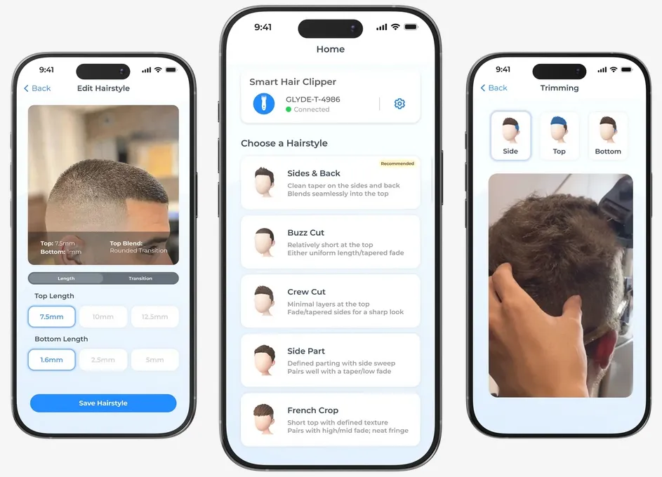 У мобільному додатку користувач обирає потрібну стрижку. Далі достатньо просто водити машинкою по голові – вона сама змінює довжину лез, щоб результат відповідав вибраному стилю.