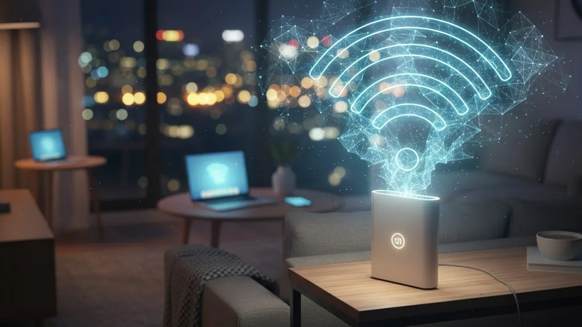 Wi-Fi роутер працює уночі. Фото: BLIK.ua, згенероване засобами ШІ