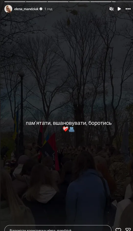 «Пам'ятати, вшановувати, боротись», - написала блогерка у сторіс.