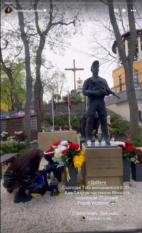 Відома українська співачка Руслана Лижичко та скандальна блогерка Олена Мандзюк вшанували пам'ять загиблого українського військового Дмитра Коцюбайла, що відомий під позивним «Да Вінчі».