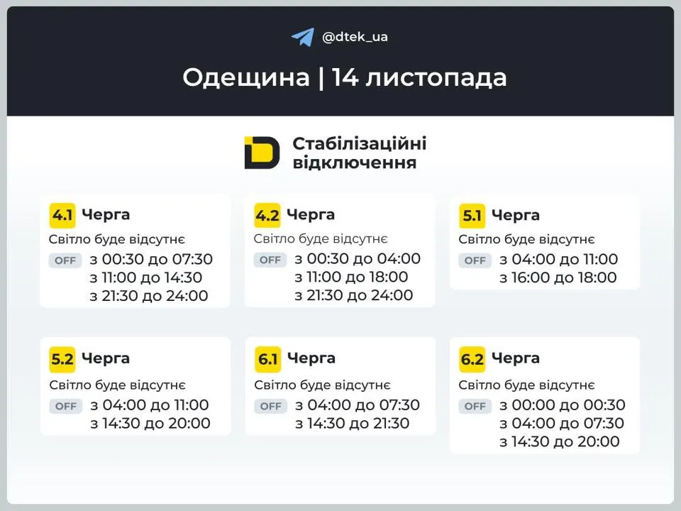 Протягом доби тривалість і масштаб відключень можуть змінюватися залежно від ситуації в енергосистемі. Щоб бути в курсі, варто стежити за оновленими графіками на офіційному сайті або в соцмережах вашого обленерго.