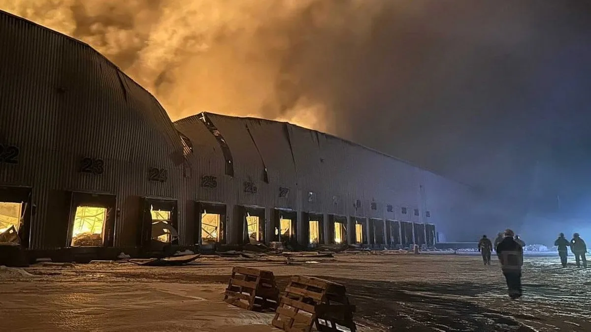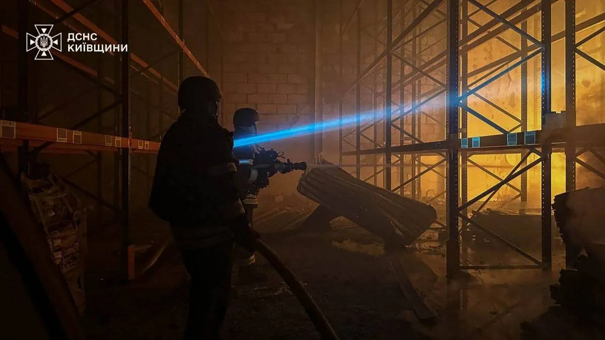 Гасіння пожежі у логістичному центрі 7 лютого. Фото: ДСНС Київщини