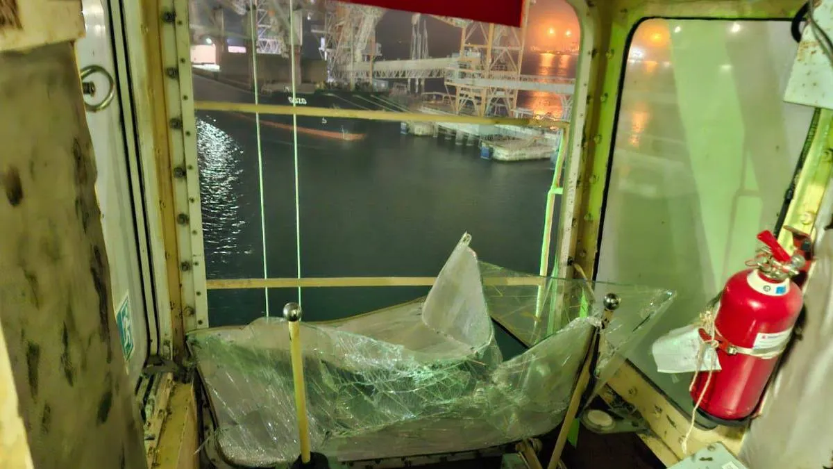 Розбитий кран у порту Чорноморська. Фото: Одеська ОВА
