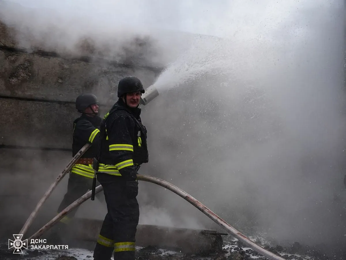 ДСНС борються з наслідками влучання. Фото: ДСНС Закарпаття