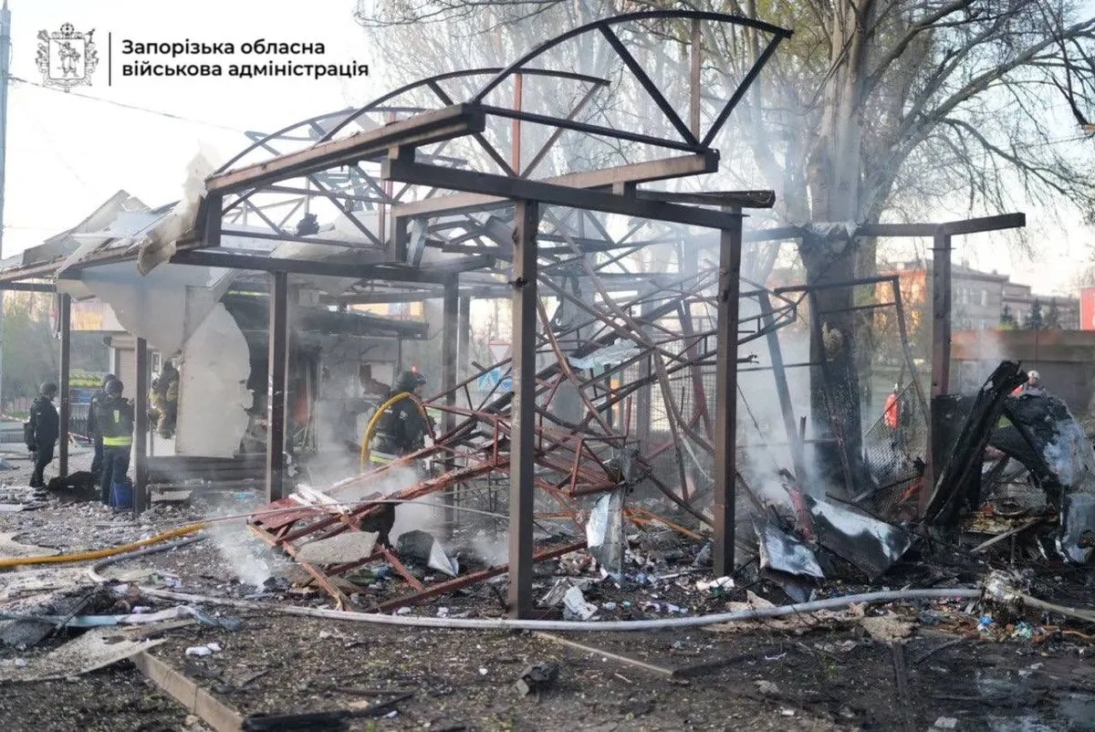 Зруйнована зупинка. Фото: Запорізька ОВА