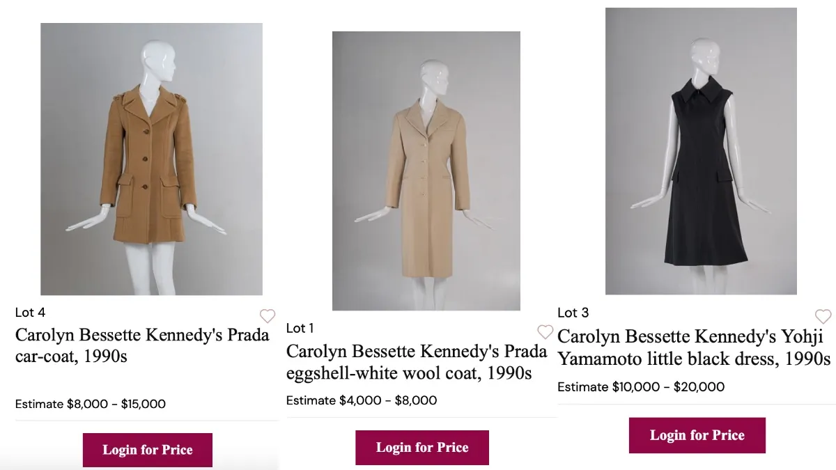 Речі Керолін Бессетт-Кеннеді на аукціоні. Колаж BLIK.ua